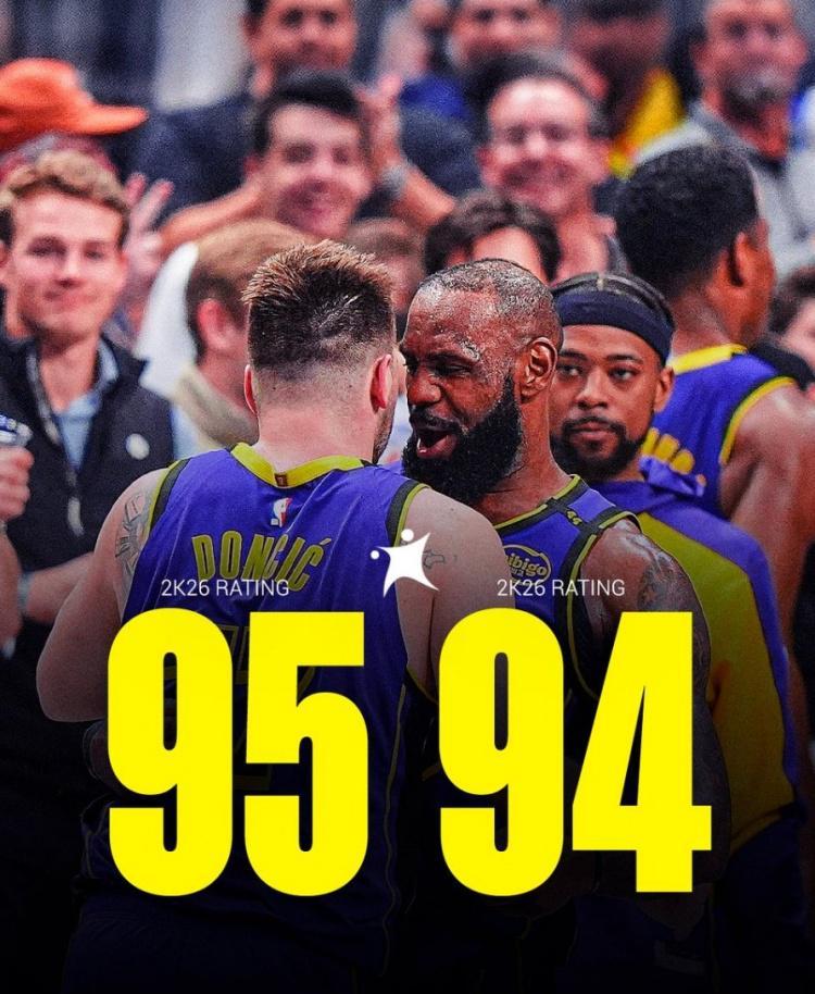 詹姆斯新赛季2K评分低于东契奇 队内第二高&个人职业生涯首次